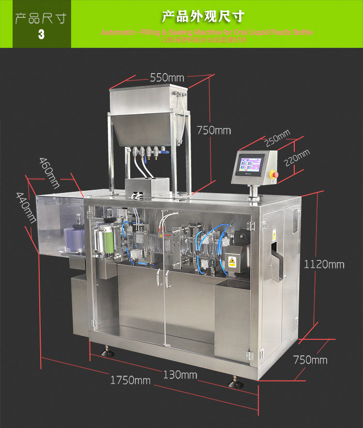 本口服液灌装机和五谷杂粮粉碎机是在引进和吸收国外先进技术的基础上,由我公司研发生产的一款专业针对塑料成型灌装一体机,能同时完成成型、定量灌装、裁出成品等动作。本口服液灌装机一体机采用HC高速高精度高端运动控制器。无级变频调速控制。伺服电机控制,拉膜装置。人机界面。装置、操作简单。自动放卷,一卷膜分切。有光电正反面图案对版功能。产品精美,满足高标准的包装要求。采用电子蠕动泵装置。和机械泵活塞泵控制。调正方便。